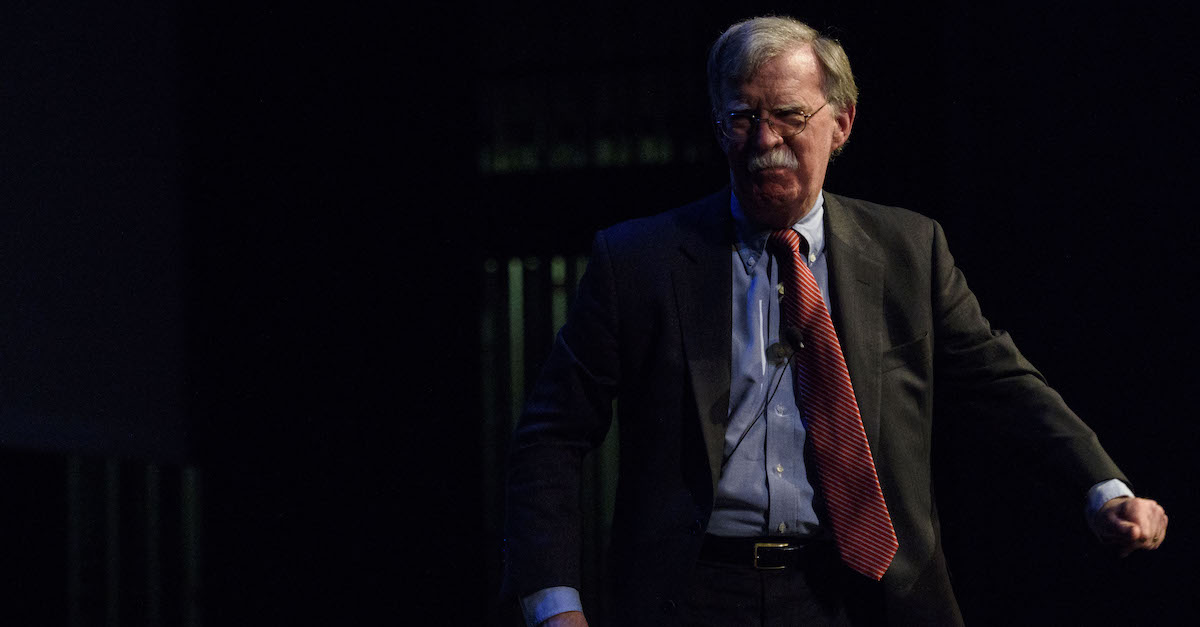 Former National Security Advisor John Bolton leaves the stage after discussing the “current threats to national security” during a forum moderated by Peter Feaver, the director of Duke’s American Grand Strategy, at the Page Auditorium on the campus of Duke University on February 17, 2020, in Durham, North Carolina (Melissa Sue Gerrits/Getty Images).