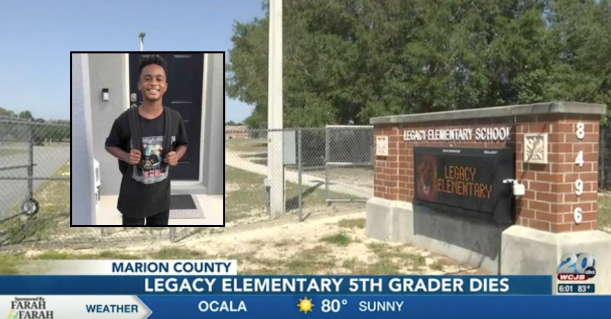 Background: Legacy Elementary School in Marion County, Fla. (WCJB/YouTube). Inset: 11-year-old Louis Johnson III (GoFundMe).