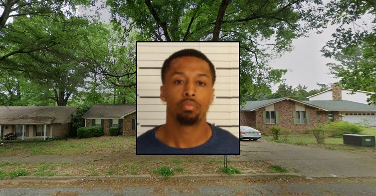 Background: The structure on the 5300 block of South Rock Ridge Road in Memphis, Tennessee, where the alleged assault occurred (Google Maps). Inset: Monoteus Brown (Shelby County Sheriff”s Office).