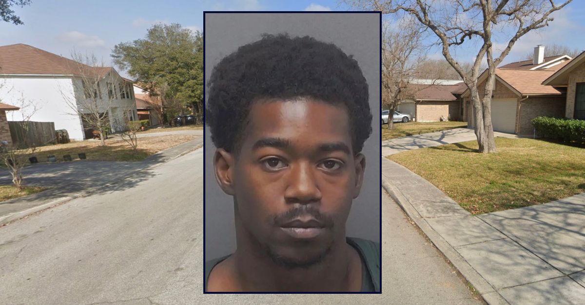 Inset: Shiateek D. Wilson (Bexar County Jail). Background: The area in Converse, Texas where Miller allegedly killed his ex-girlfriend’s new boyfriend (Google Maps).