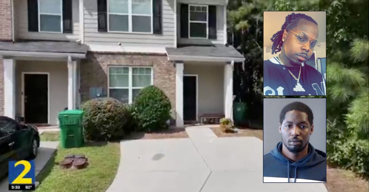 Background: The home in Lithonia, Ga., where Keenan Williams allegedly shot and killed Cole Pitter. Inset top: Cole Pitter (Plummer Funeral Home). Inset bottom: Keenan Williams (DeKalb County (Ga.) Sheriff’s Office).
