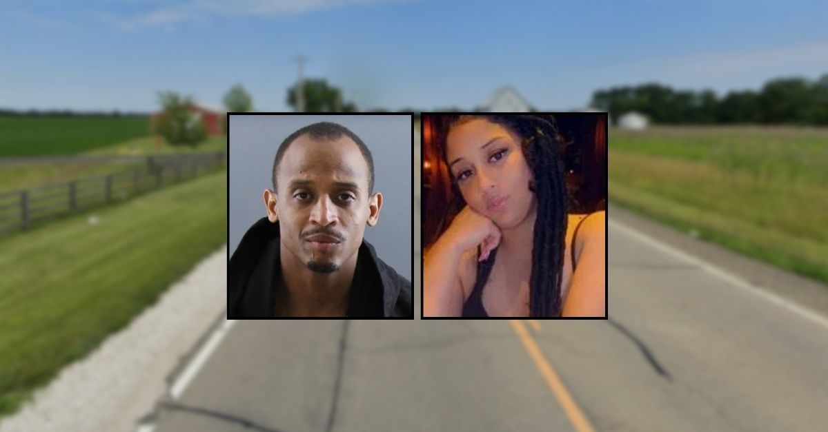 Inset left: Joshua McGee (Peoria County Sheriff”s Office). Inset right: Ashley Tankersley (T. W. Parks Colonial Chapel). Background: U.S. 150 near Philander Chase Lane in Brimfield, Illinois (Google Maps).