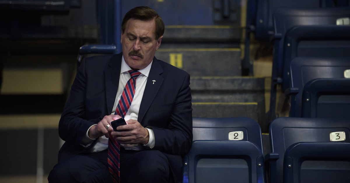 MyPillow CEO Mike Lindell checks his cellphone inside the Covelli Centre before a Save America Rally, featuring former President Donald Trump on Sept. 17, 2022, in Youngstown, Ohio (Jeff Swensen/Getty Images).