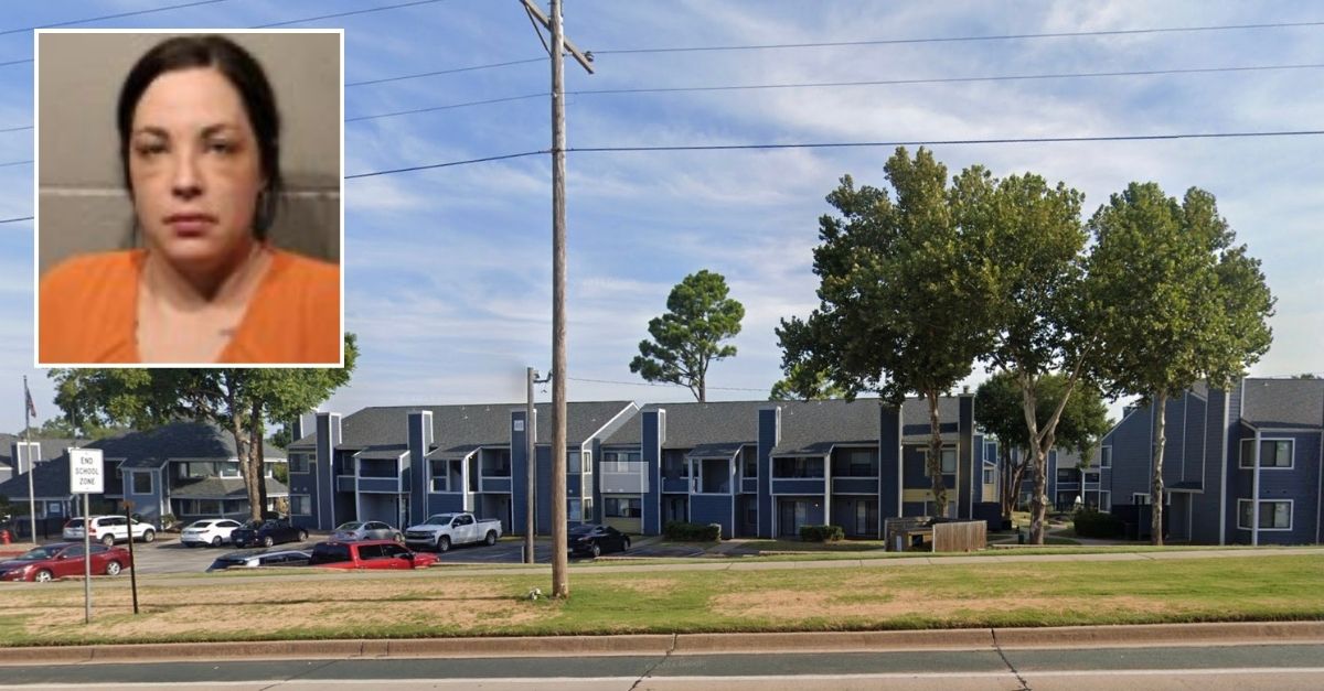 Inset: Kristeny N. Davis (Cleveland County Detention Center). Background: The apartment building where her newborn baby was fatally injured (Google Maps).