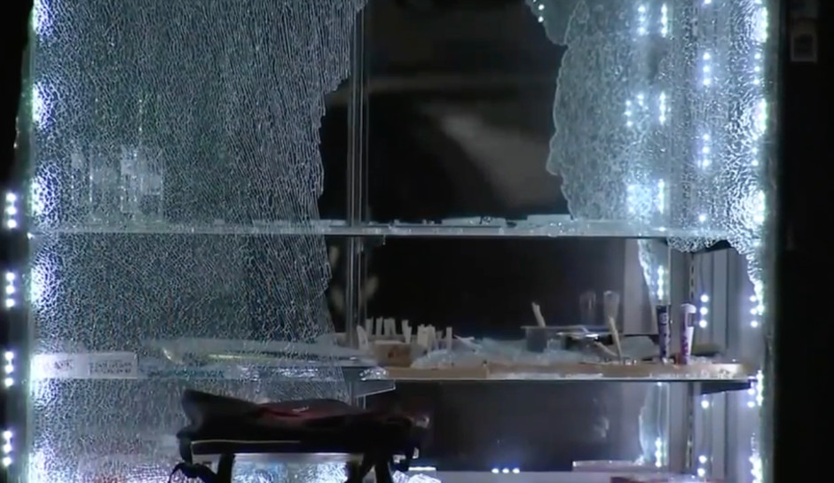 The two suspects, both wearing masks, fled the scene.