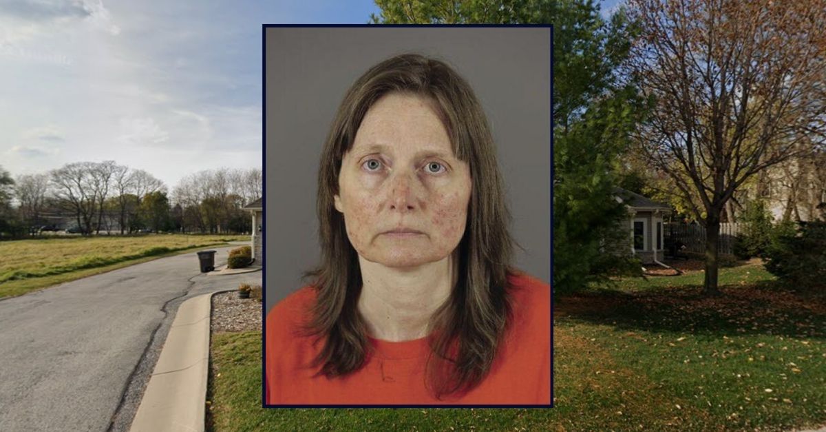 Inset: Amy S. Laszkiewicz (Waukesha County Jail). Background: The residence where Laszkiewicz allegedly allowed her daughter to starve to death in Pewaukee, Wisc. (Google Maps).