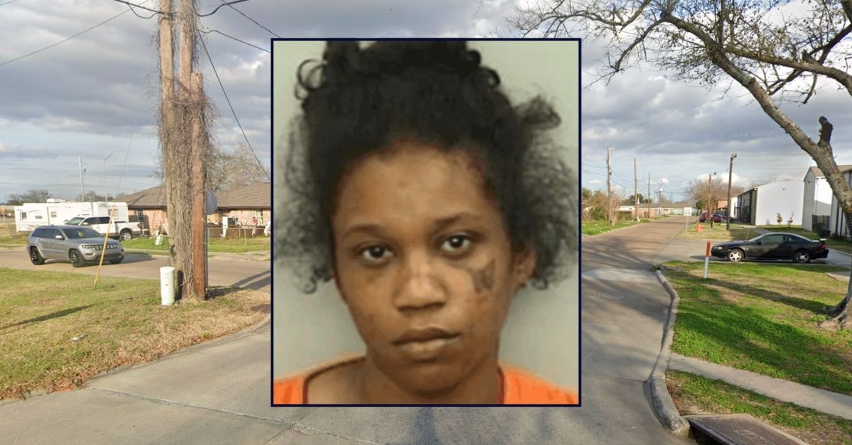 Inset: Daionjanee R. Young (Calcasieu Parish Sheriff’s Office). Background: The area around Winterhalter Street in Lake Charles, La., where Daionjanee Young lives (Google Maps).