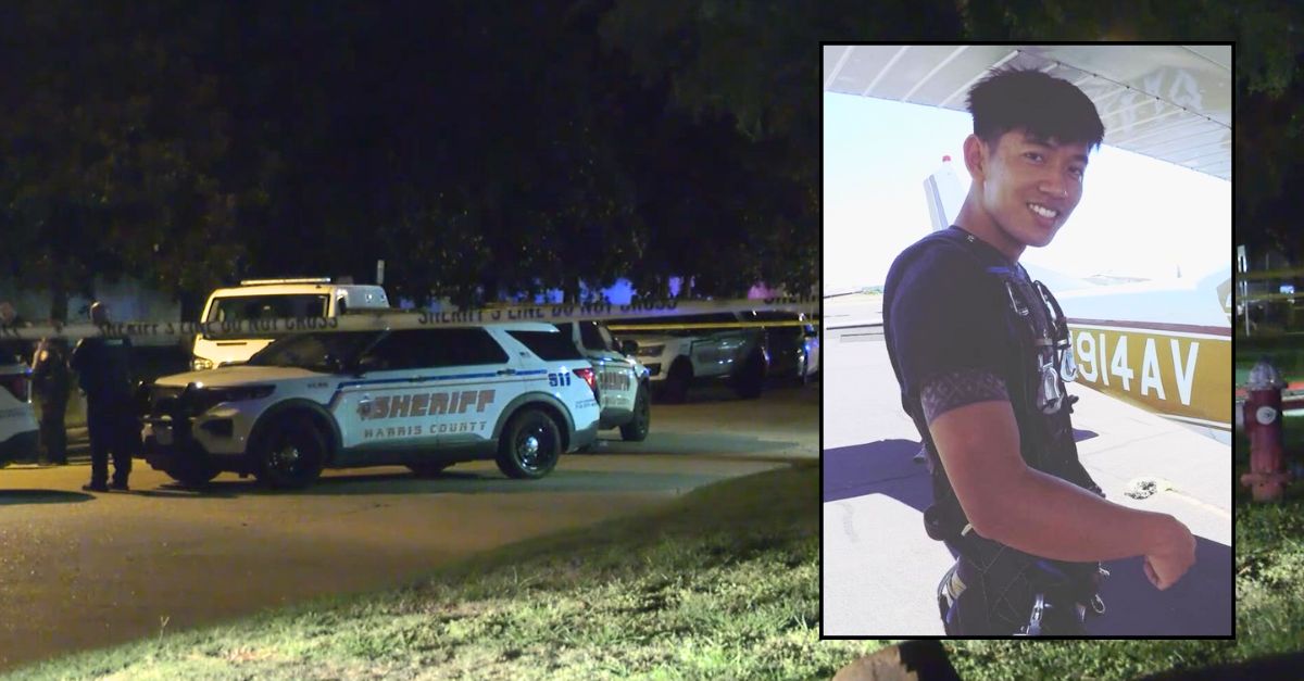 Background: The scene in Houston, Texas on Sept. 4, the night Quoc “Jake” Nguyen was found dead (KHOU). Inset: Quoc “Jake” Nguyen (GoFundMe).