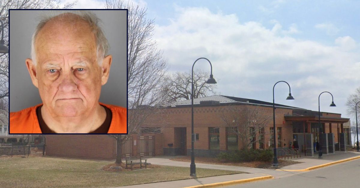 Inset: Robert Phillip Ivers (Hennepin County Sheriff’s Office). Background: The Wayzata Library in Wayzata, Minnesota, where Ivers allegedly showed his manifesto to the staff (Google Maps).
