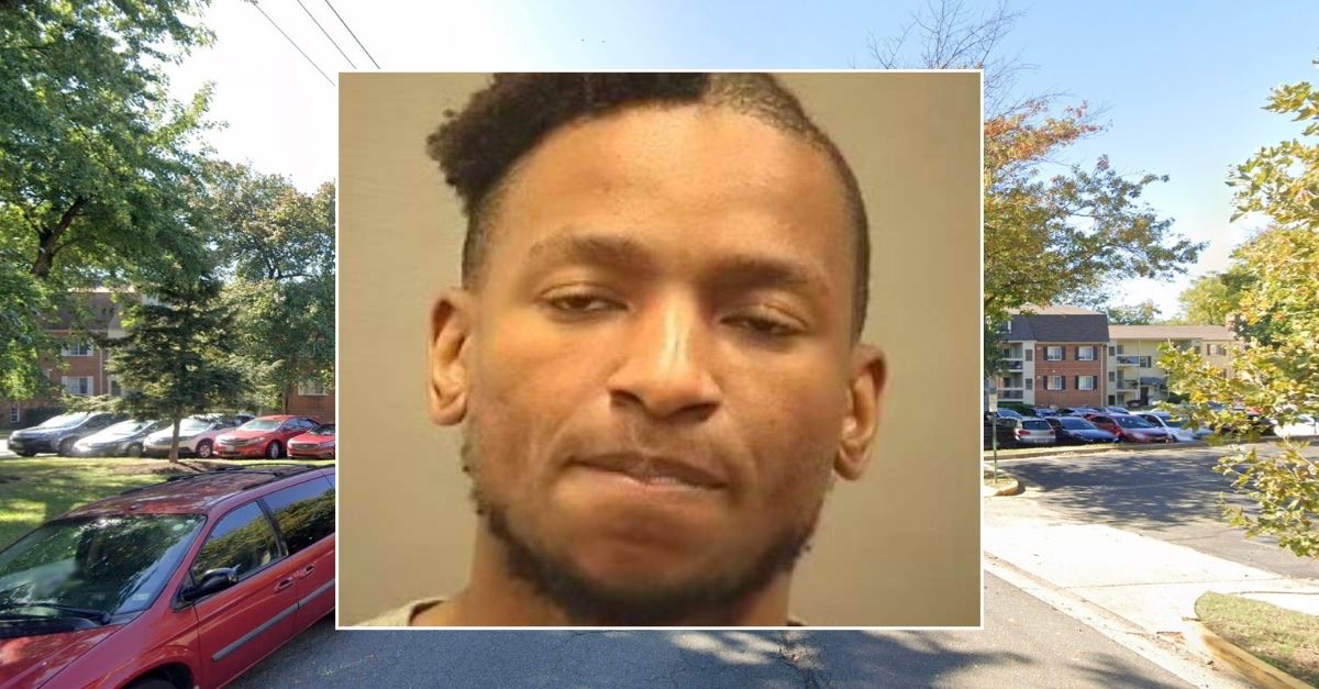 Inset: Dontae Lashaun Drumgold (Alexandria Sheriff’s Office). Background: The area in Virginia where Drumgold shot and killed his roommate in 2022 (Google Maps).