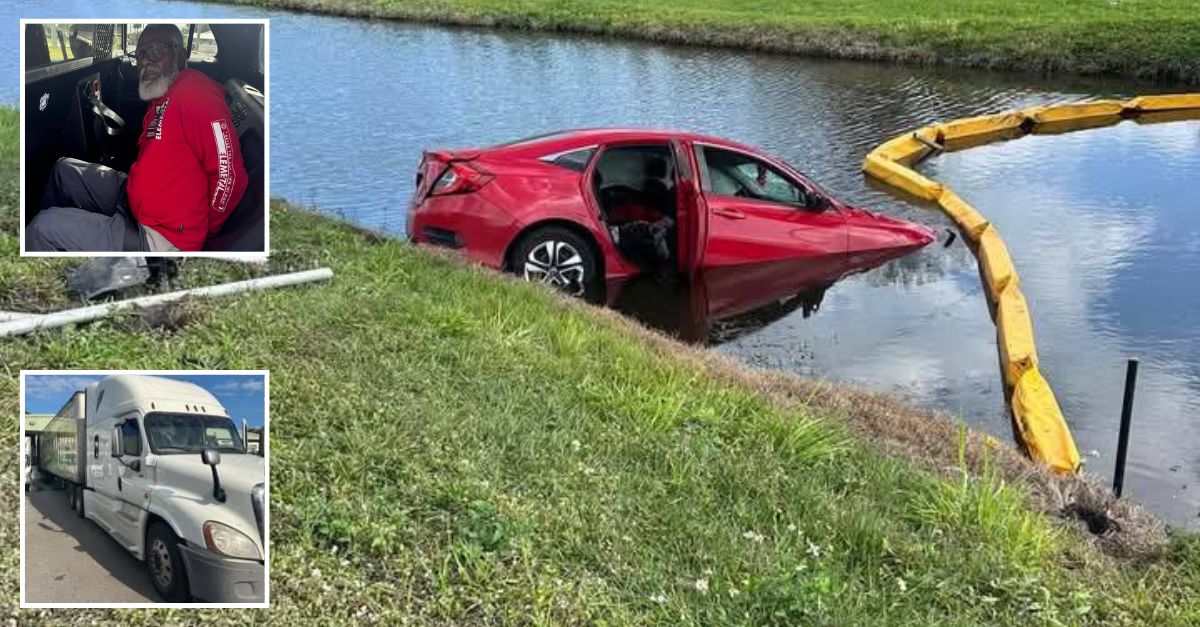 A 69-year-old semitruck driver in Florida has been accused of an hit-and-run accident in which he allegedly switched lanes and forced a woman and her 3-year-old child to veer off a highway, crashing into a pond that ran alongside the road before continuing on his way to make a scheduled delivery.
