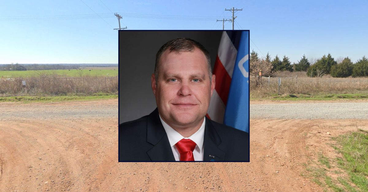 Inset: Rep. Ty Burns (Oklahoma House of Representatives). Background: The area where Burns allegedly ran a car off the road with his 16-year-old daughter inside (Google Maps).
