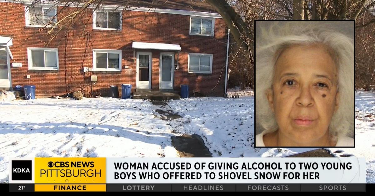 According to Pittsburgh police, two boys, ages 12 and 13, offered to shovel snow in front of the home of Rochelle Stewart, 64, on Jan. 8. The criminal complaint obtained by KDKA, a local CBS affiliate, says that Stewart agreed to pay the boys $5 to shovel her walkway. While they completed the job, Stewart invited the boys inside, where she allegedly offered them hot chocolate and a variety of alcoholic beverages.