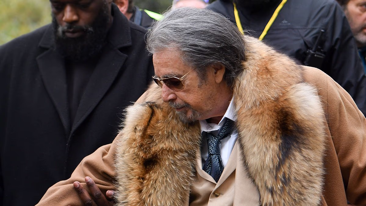 Embracing his gangster roots once more, Pacino was dressed in a stylish beige ensemble, complete with a striking faux fur-collared suit.