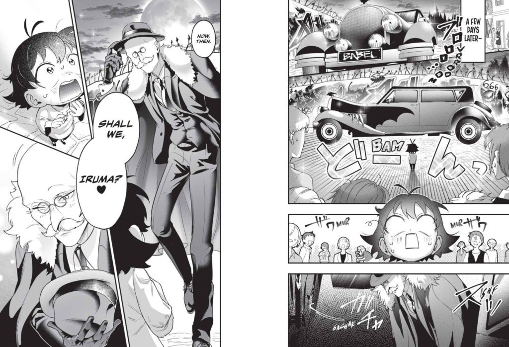 Fast forward nine years and Iruma is now the underboss, Babel’s Number Two, with a scarily stern tutor (Kalego Naberius, who is also the famiglia’s treasurer) and a bodyguard, Opera, who is constantly feuding winding Kalego up. The second chapter shows Kalego at his most irascible as the family has racked up a huge debt – but who could imagine the ingenious solution Iruma comes up with to solve the problem? And the third chapter finds the young underboss on his way to Walter City ‘The Metropolis of Fantastical Fun’ where – of course – not everything is as it should be…