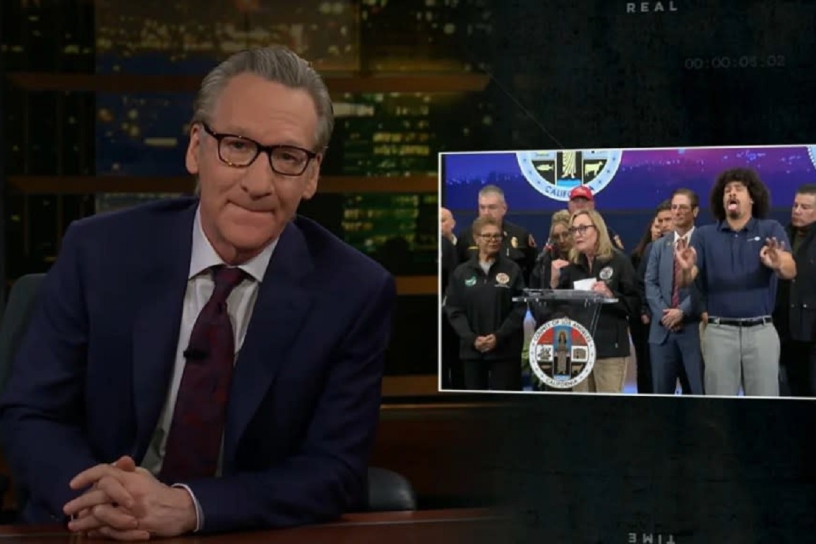 Maher ended by linking governmental inefficiencies and identity politics to larger systemic issues, while acknowledging that “wokeness” alone wasn’t the cause of the fires. “Cali has no shortage of safety commissions and agencies and bureaucrats and regulators and of course, sign language interpreters who communicate with their fists,” he quipped, accompanied by a montage of interpreters.
