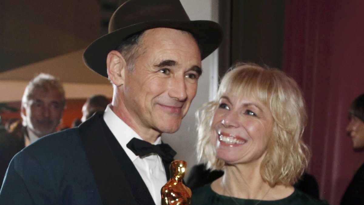 Rylance, winner for Best Supporting Actor for his role in ‘Bridge of Spies’, arrives with his wife at the Governors Ball following the 88th Academy Awards in Hollywood