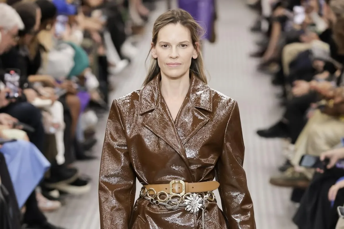Hilary Swank walks the runway during the Miu Miu Ready to Wear 2025 fashion show
