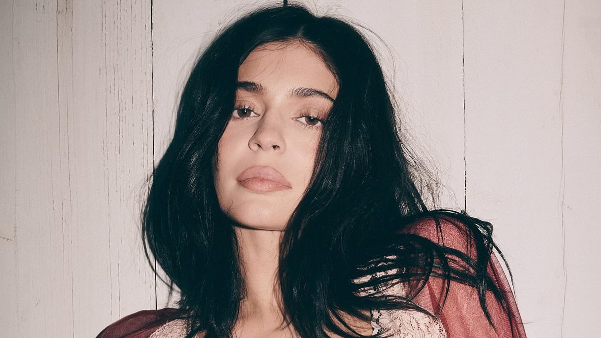 The Kylie Cosmetics founder left her raven black hair down in tousled, messy waves and rocked a soft, monochromatic makeup look.