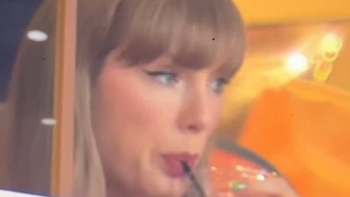 Travis had his eyes on the game as Taylor leisurely sipped on her drink