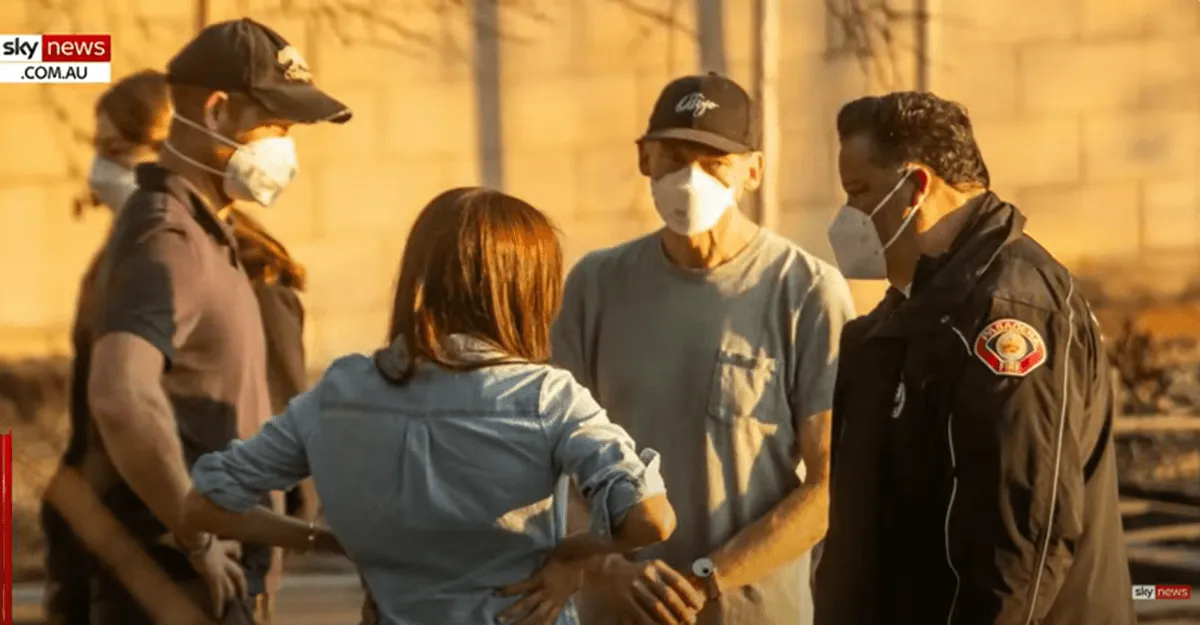 Screenshot of Prince Harry and Meghan Markle touring damage and meeting LA fire victims via Sky News Australia YouTube channel
