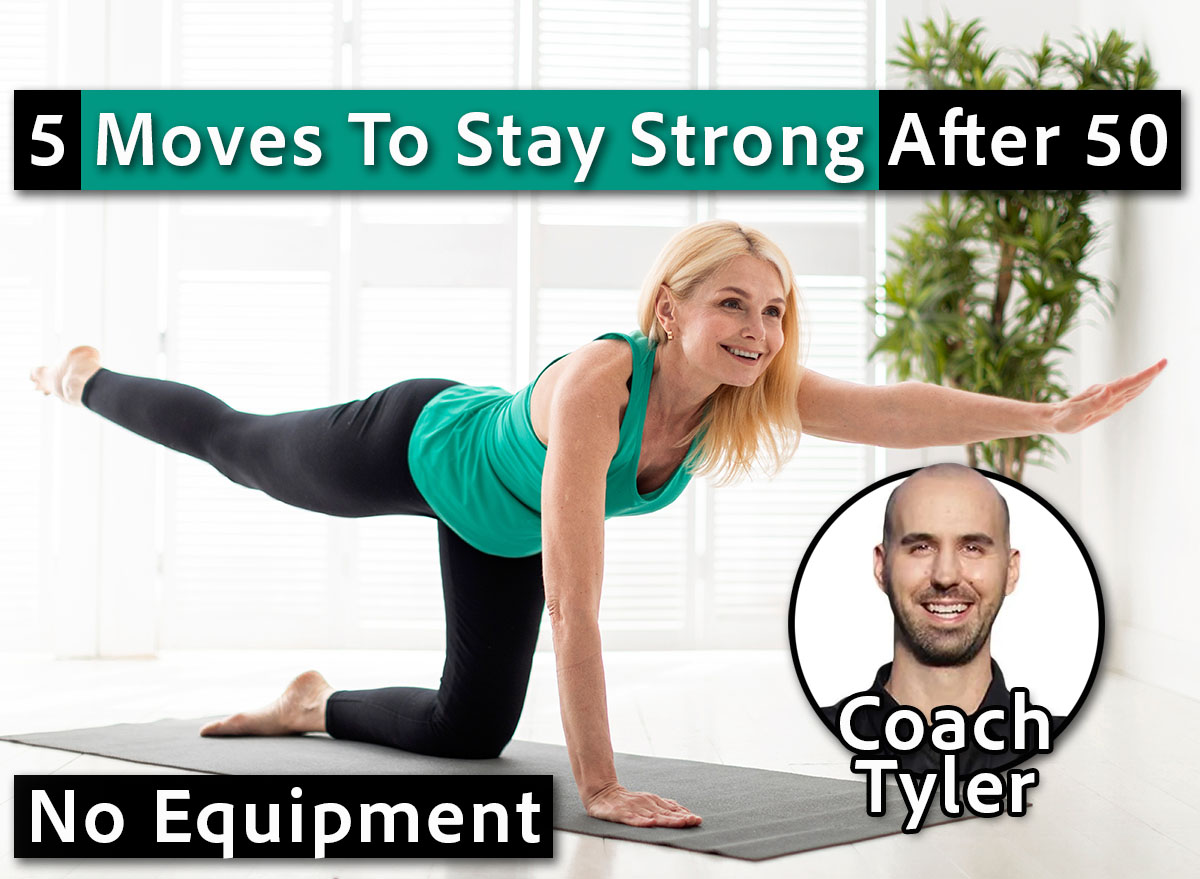 This five-move routine builds foundational strength without overloading your joints. It targets major muscle groups while activating stabilizers that tend to weaken with age. You’ll reinforce proper movement patterns, improve posture, and build muscular resilience that pays off in and out of the gym.
