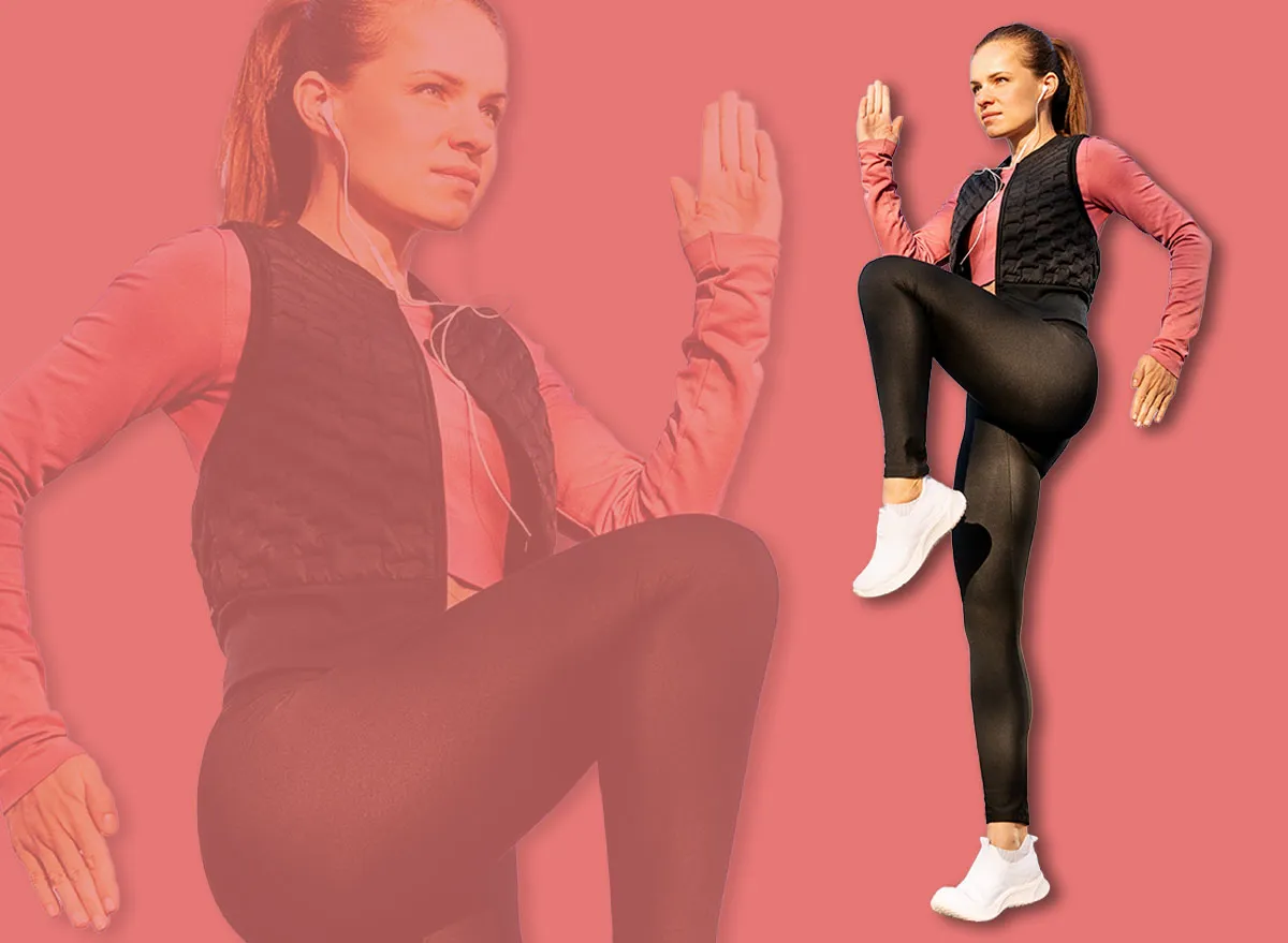 - Drive one knee up toward your chest.