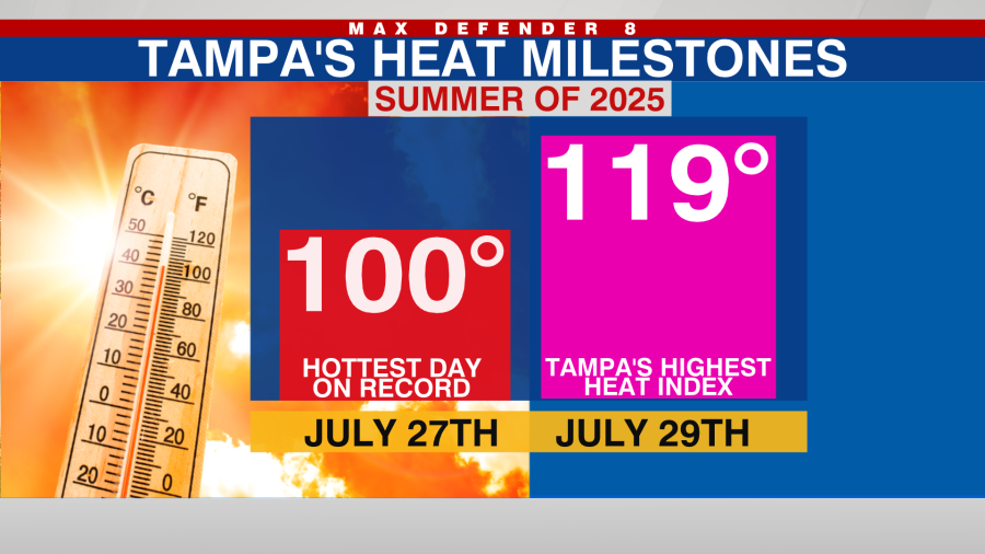 The highlight, or some may say lowlight, was Tampa hitting 100 for the first time on July 27 — now an all-time record for the city. Two days later, Tampa also had its highest heat index on record at 119.