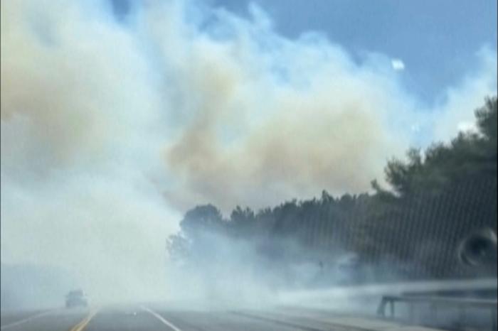 Wind-driven brush fire on New York's Long Island 50 percent contained. Firefighter injured