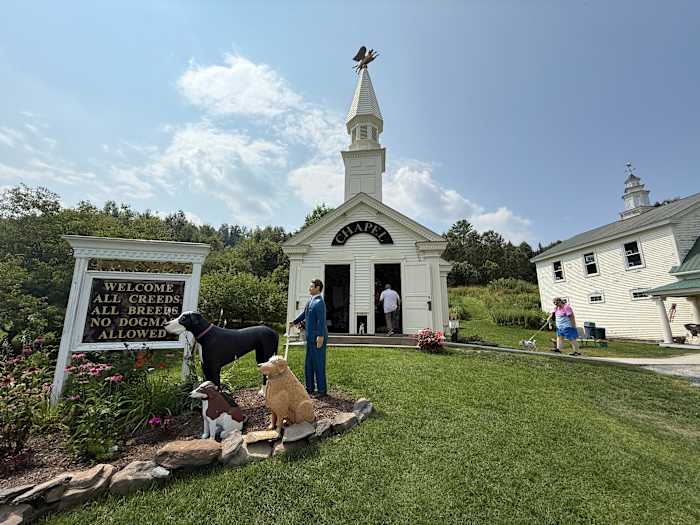 The park was created 25 years ago by Vermont folk artist Stephen Huneck and his wife, Gwen, and features hiking trails, swimming ponds, an art gallery and a Dog Chapel where visitors can add to the thousands of photos and notes to pets that cover the chapel walls.