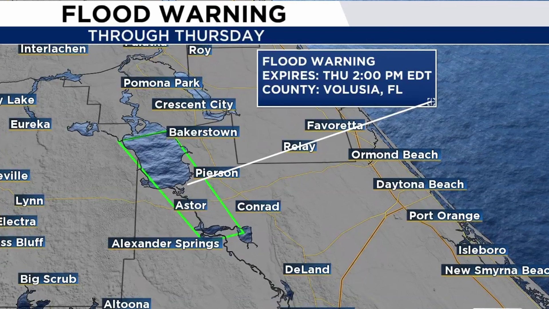ORLANDO, Fla. – A flood warning is now in effect along the St. Johns River near the Astor area. Wetter-than-normal conditions are expected for the majority of the work week, increasing the threat for minor flooding from Tuesday to Thursday.