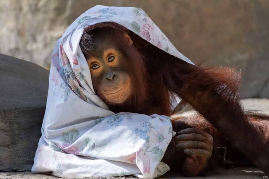 The Bornean orangutans have received blankets so they can wrap themselves in them, according to ZooTampa.