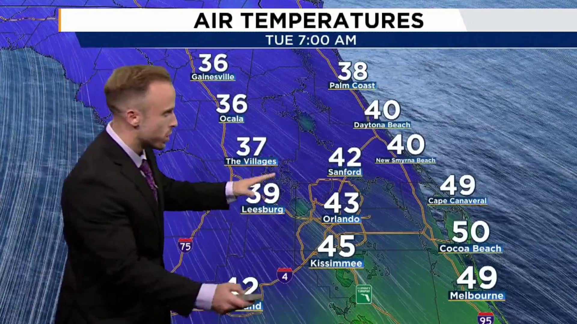 The coldest weather settles in with us by Wednesday morning, where a number of our morning low temps could be hovering between the upper 20s and low-mid 30s from our northern counties back down across the Orlando metro area.