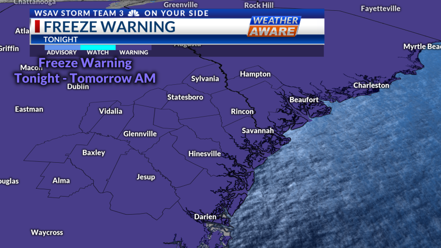 Tonight, the mercury is set to drop further, courtesy of the cold front that swept in yesterday. Expect lows in the upper 20s, and combined with persistent winds, wind chill factors could plunge into the teens for some locales. A Freeze Warning has been issued for the entire region from tonight through tomorrow morning. Tomorrow morning has been declared a Weather Aware Day due to the anticipated widespread freeze. It’s advisable to allocate extra time for de-icing your vehicle before stepping out. Additionally, a Cold Weather Advisory is in place for inland Georgia and South Carolina as wind chills are expected to hover in the teens and 20s.