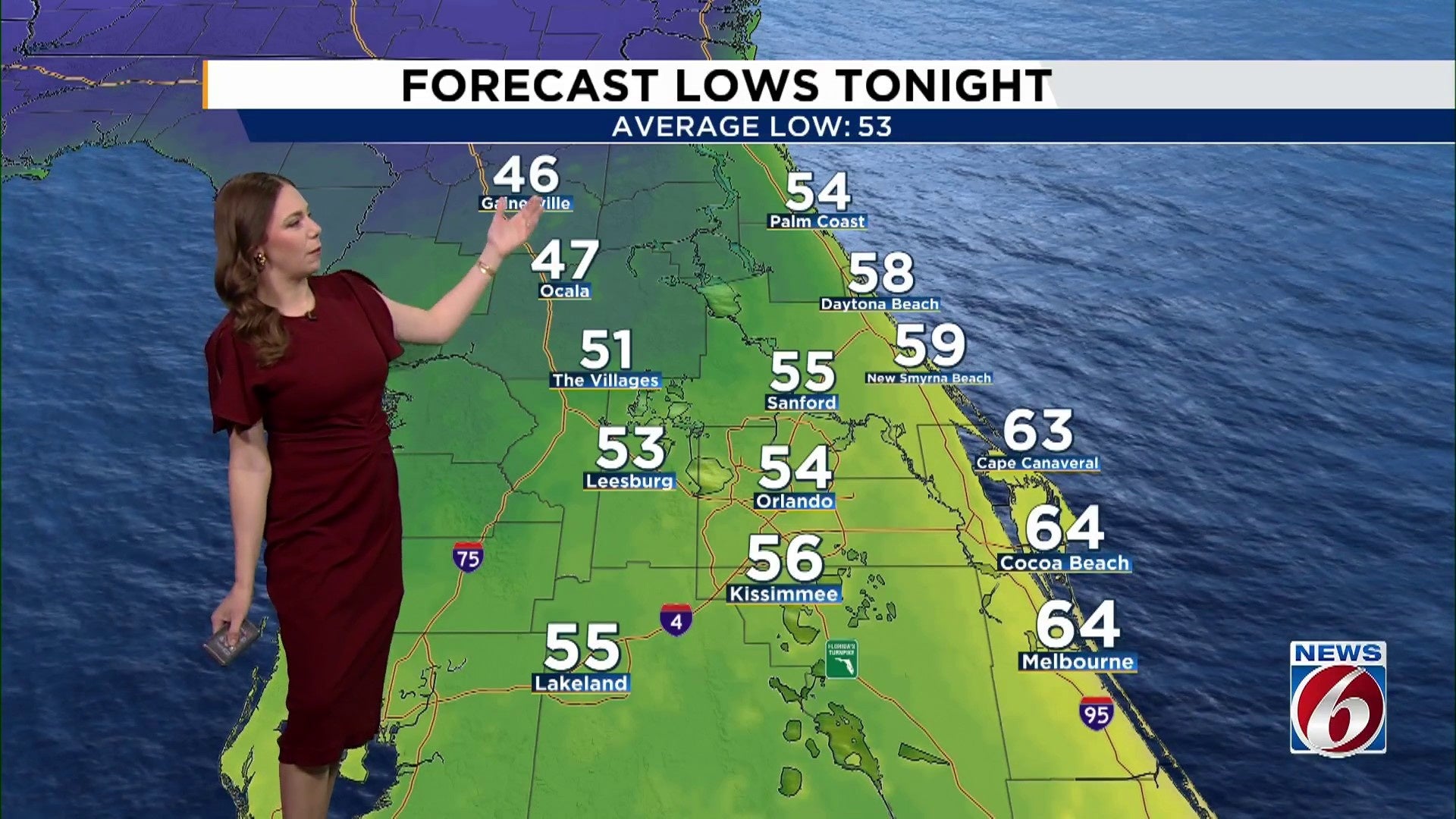 Overnight lows will fall into the low to mid-50s inland and low 60s along the coast.