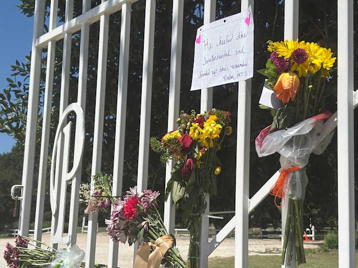 A handwritten note left with flowers at the park read, “always an example forever an inspiration.”