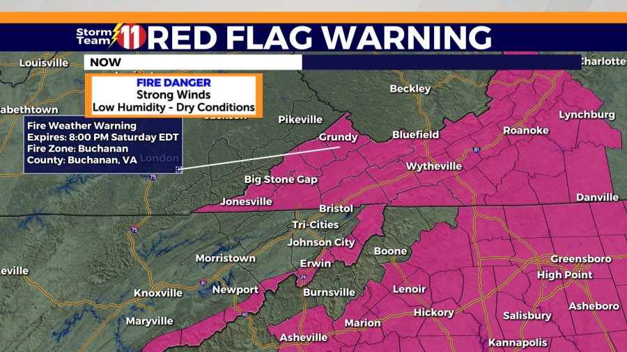 According to the National Weather Service (NWS), Red Flag Warnings are in effect in the mountains of East Tennessee until 11 p.m. and in Smyth, Tazewell and Wythe counties in Virginia until 8 p.m.