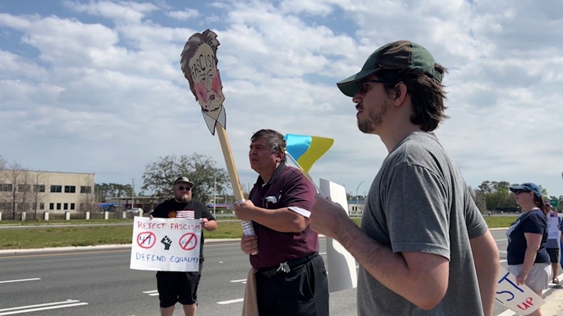 ORLANDO, Fla. – Protesters gathered Saturday in front of the Tesla dealership along John Young Parkway to decry Elon Musk and the policy changes they say he’s influenced within the government.