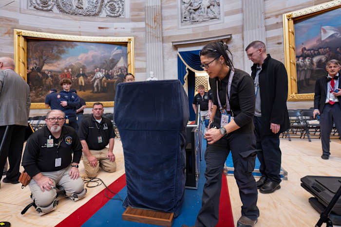 But the Capitol Rotunda can only hold around 600 people, according to organizers. There will be precious few spots for Supreme Court justices, military leaders, former presidents and their spouses, Cabinet nominees and visiting dignitaries — along with the 535 members of Congress who traditionally get prime spots, though some Democratic lawmakers are skipping the ceremony.