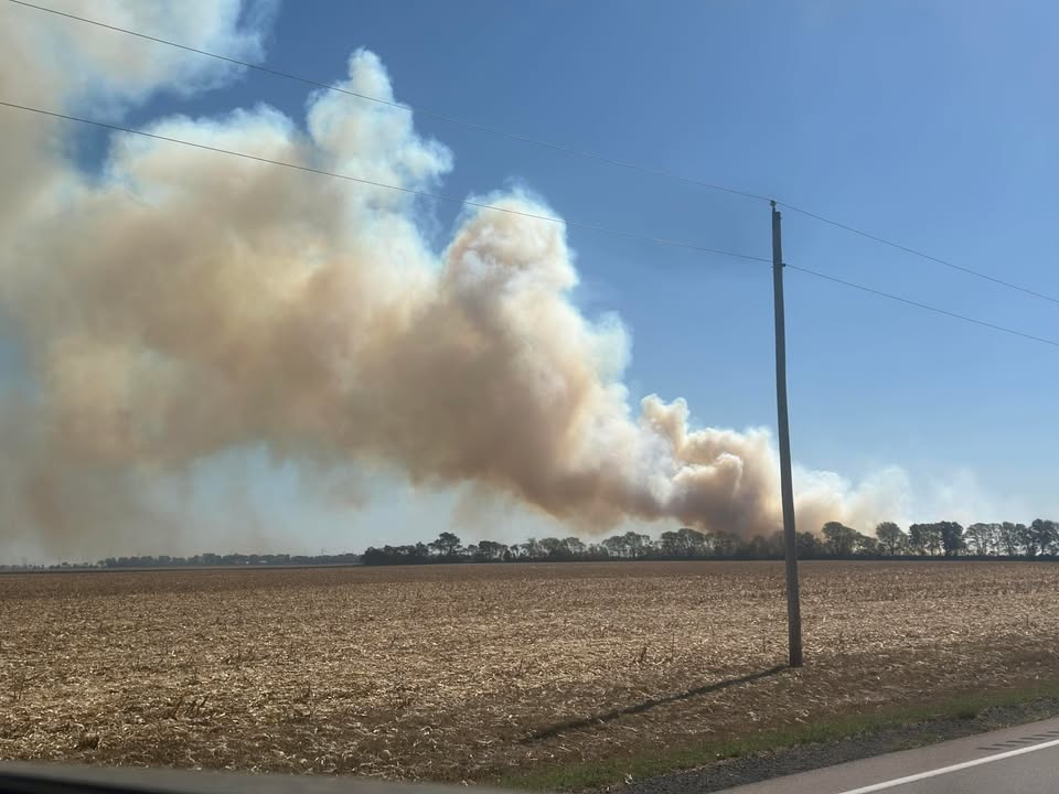 Kevin Chalmers with the Philo Fire Protection District said that they got the call about the fire around noon. It happened near the intersection of County Road 300 N and County Road 1600 E. The firefighters responded, and when they were about six miles away they noticed a large plume of smoke.