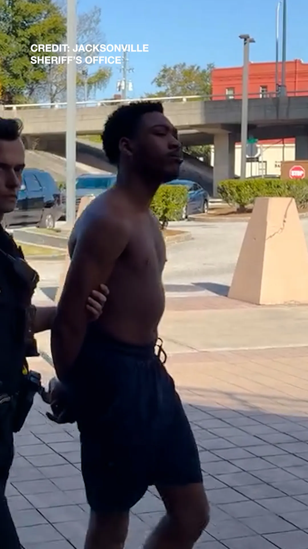JSO released a video on Facebook of Prentice outside of a county jail without shoes or a shirt while a deputy escorted him.