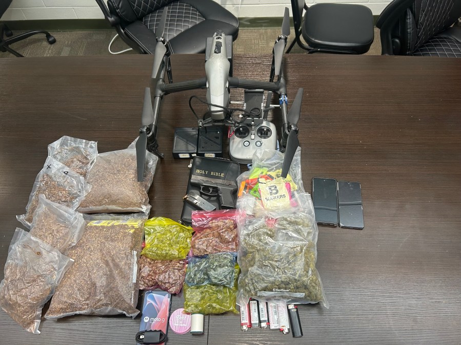 Deputies made a traffic stop around 8:15 p.m. on a vehicle in Davisboro. Deputies reportedly saw packages wrapped in cellophane and a drone inside the vehicle. The packages were stated to be contraband intended for the prison.