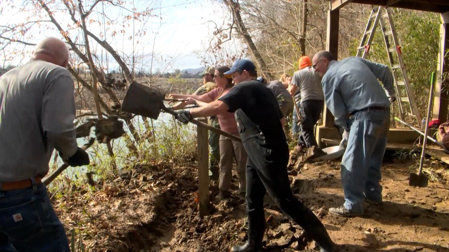 LIMESTONE, Tenn. (WJHL) – Flooding from Hurricane Helene left nearly a foot of mud on the trails of David Crockett Birthplace State Park. On Saturday, volunteers worked to restore the trails they love.