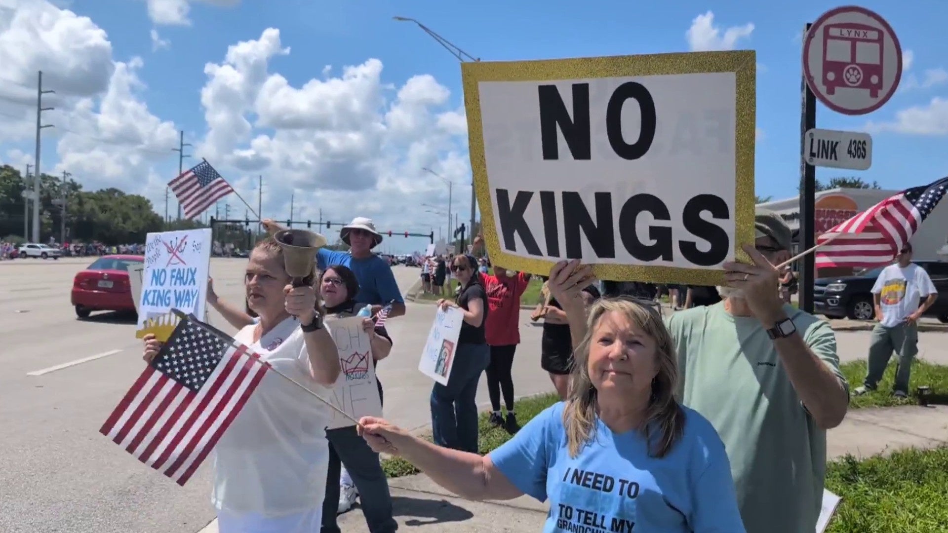 CASSELBERRY, Fla. – Hundreds of protesters gathered at the intersection of S.R. 436 and Howell Branch Road in Casselberry Thursday, just one of the nationwide protests dubbed “No Kings.”