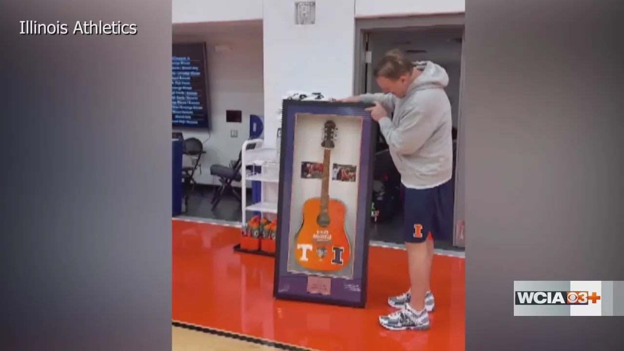 Illinois basketball team presents framed smashed guitar to Underwood