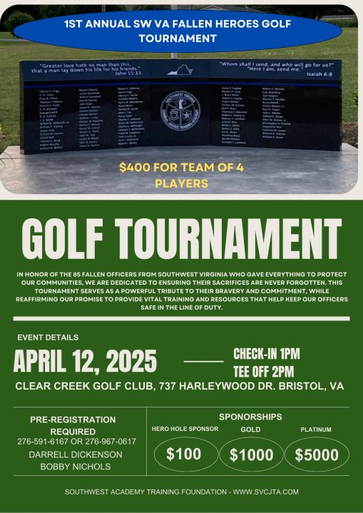 To register a team or sponsor a fallen officer, call 276-591-6167 or 276-967-0617. The registration fee is $400 per team of four.