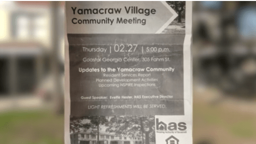 Community leaders invited tenants to a community meeting Thursday night to discuss the fate of Yamacraw Village.