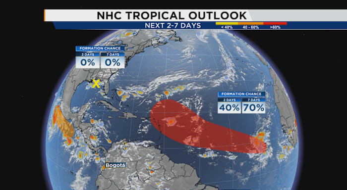 The system has a 40% chance of development over the next two days and a 70% chance through the next seven days.