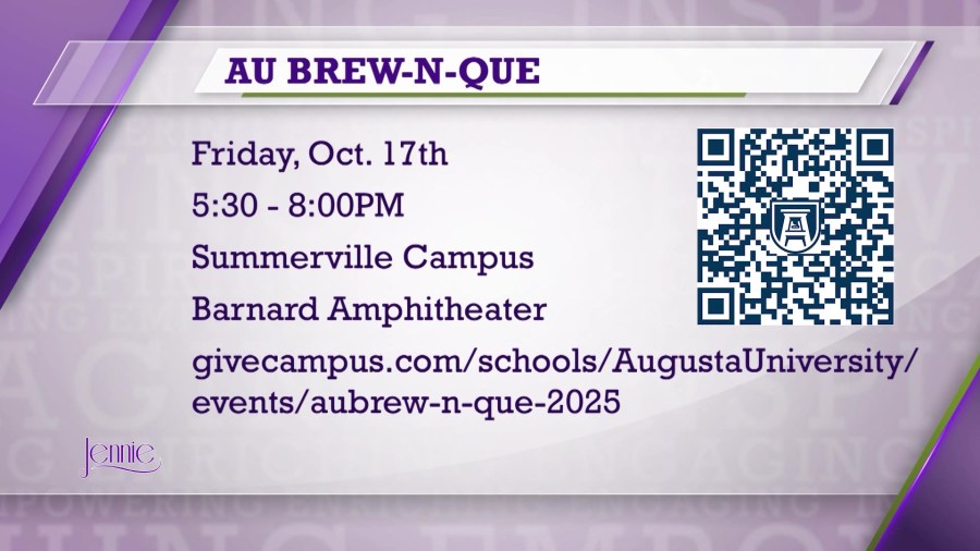 AUGUSTA, Ga. ()– Mark your calendar for the annual AU Brew-N-Que, brought to you by the Summerville Alumni Society! This family-friendly celebration is open to everyone and supports undergraduate scholarships. Enjoy mouthwatering BBQ by Sconyers while the Brandon Henson Trio provides live music. Kids will love the inflatables in the kids’ zone, and don’t miss the dazzling fireworks show to close out the evening! This event also launches Parent and Family Weekend. Tickets are $25 in advance and $30 at the door.