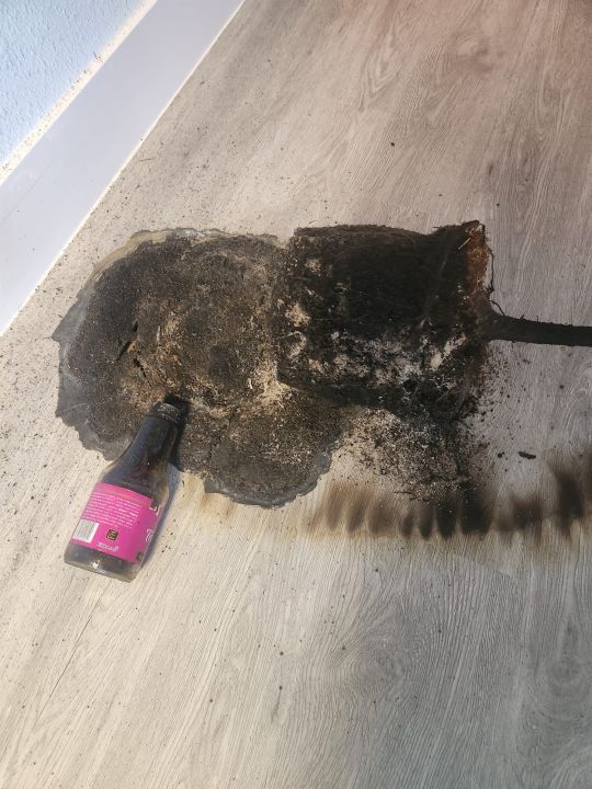 Two Molotov cocktails had been thrown inside. They scorched the floor and filled the space with smoke.